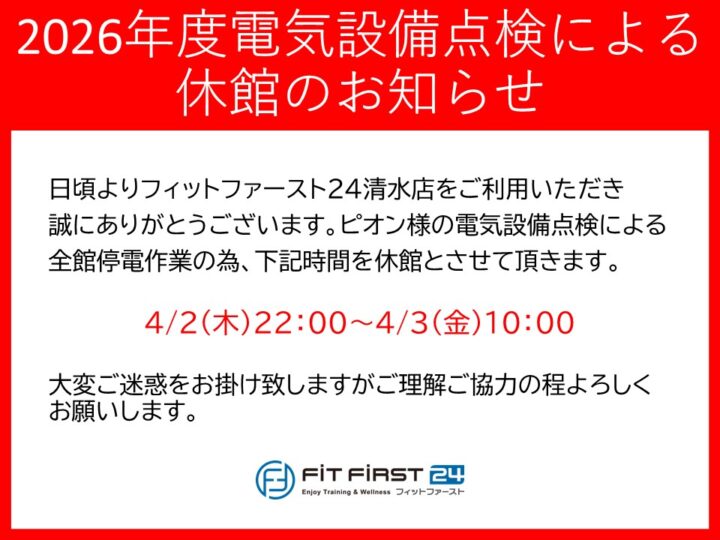 【需要】電気設備点検による休館のお知らせ