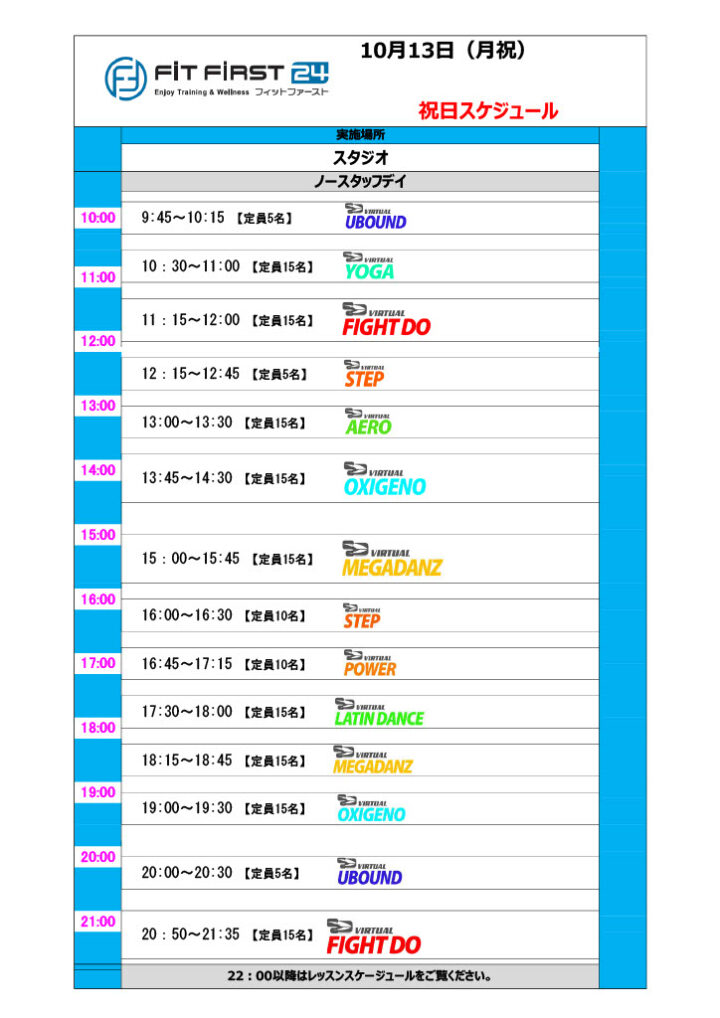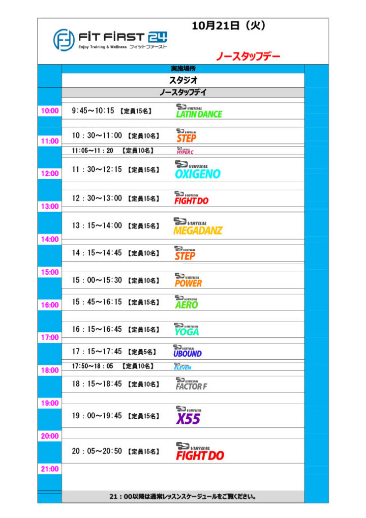 10月13日 21日のVRスケジュールをお知らせいたします。